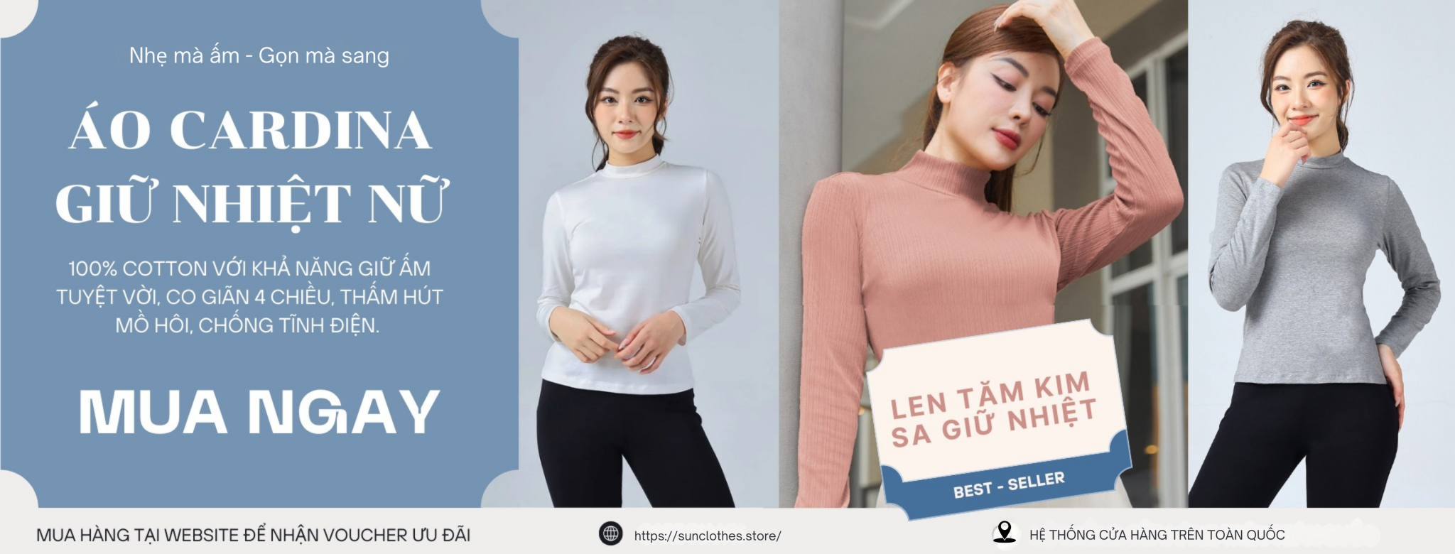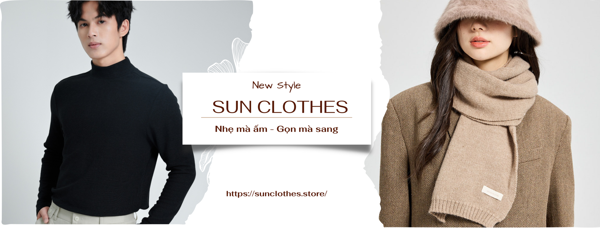 Sun Clothes là thương hiệu thời trang giữ ấm cao cấp, hướng tới những khách hàng trẻ trung, năng động nhưng vẫn đề cao sự tinh tế và tiện dụng trong từng sản phẩm. Hiện tại, Sun Clothes tập trung vào 3 dòng sản phẩm chủ lực: áo giữ nhiệt ôm vừa vặn, giữ ấm tốt mà vẫn thoáng và dễ phối đồ; găng tay êm, co giãn, giúp bảo vệ đôi tay khỏi gió lạnh mà vẫn thoải mái khi cầm nắm, sử dụng điện thoại; và khăn choàng cổ mềm nhẹ, họa tiết tinh tế, vừa giữ ấm vừa tạo điểm nhấn thời trang. Với Sun Clothes, khách hàng có thể tự tin ra ngoài trong những ngày thời tiết lạnh mà vẫn giữ được phong cách và sự thoải mái suốt cả ngày.